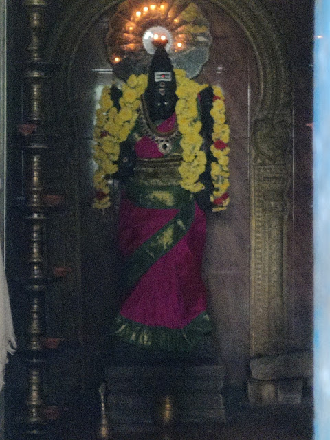The temple is a parihara sthalam and Rahu Ketu are standing as the Dhwarapakas. There are 5 Nandhi at the Nandhi Mandapam and you see him with his consort. During specific months the sun falls directly on one half of the shivalingam and another month it falls on the other side.